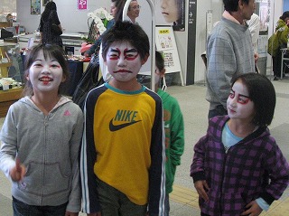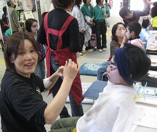 今年も一般の方々に 隈取りを無料でメイク するコーナーが・・・ 「毎年大盛況です!」 |