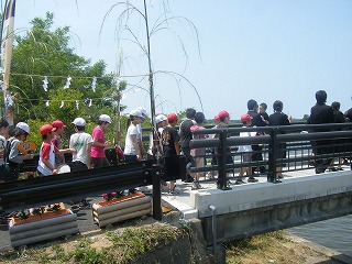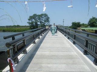 宮司さんのお祓いの後 いよいよ渡り初めです |