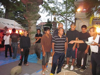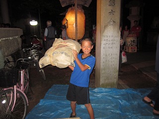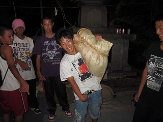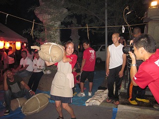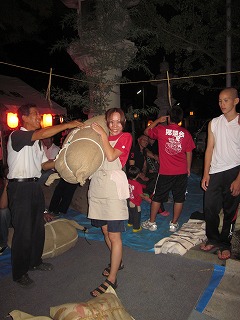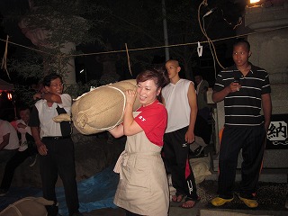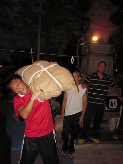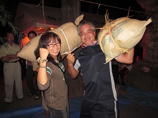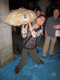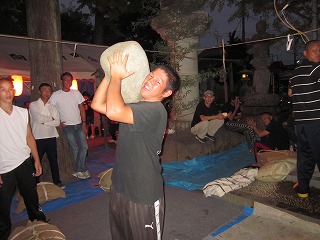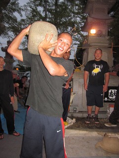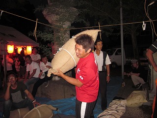 今年も来ました 高校生の男の子達や 力自慢の男達が・・・ 柔道部だったという猛者も! 今年も65Kg級を何人 もが上げました |