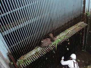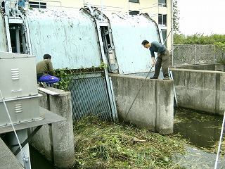 しかし、川に落ちた草が 除塵機まで流れつくと・・・ |
