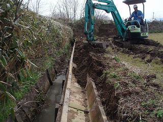 U字溝(リサイクル品)を 保管してあった場所から 積み込み作業中です |