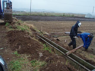 こんな時のために 中古のU字溝を大切 に保管してありました 「使えるのたぁんとあるぞ!」 |