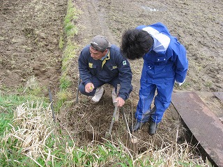 まずは既存の素掘り 開水路を掘り起こして いきます |