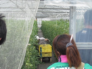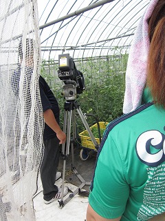 曇りとはいえハウスの中は 高温・多湿です カメラマンの方も汗だくでした |