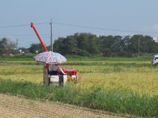パラソル付きのコンバイン あまりにかわいいのでパシャリ |
